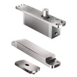 - Set includes top pivot, bottom pivot, rectangular floor plate, ceiling plate, and mounting kit