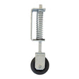 - Spring loaded gate wheel helps support unhinged end of large gates.