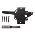 - Latch is reversible and can be used on left or right hand gates. To reverse the handing, simply remove the spring and hex head pivot bolt. Flip the fence post attachment plate upside down and reattach spring and pivot bolt.