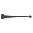 The smooth heart style heavy duty strap hinge is expertly crafted from the material to the stylish design. The steel is smooth on the strap but has notched edging that gives it a bit of texture. The strap comes to a point with heart-shaped steel. The look of this hinge is very classy and an easy way to elevate the presence of your doors or gates. The hinge pin is removable so you can reverse the pad if necessary. This allows the hinge to be installed as either a full-surface hinge or a half-surface hinge. The weight rating of the smooth heart style heavy duty strap hinge is 600 lbs. per pair, so two hinges will be able to manage quite a sum of weight. The strap lengths come in 30" and 36" to ensure your hinges fit your door or gate perfectly. Matching wood screws are included with your purchase, so you won't need to buy mounting hardware separately. Install the smooth heart style heavy duty strap hinge on front doors or gates, backyard gates, sheds, and in many other locations.