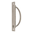 - This pocket door pull remains recessed in the edge of the door until you push on the tab at the bottom and pull it to the open position.